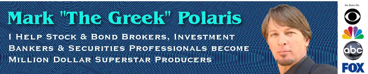 If you are a stock or bond broker, financial advisor, investment banker, insurance broker, or other securities professional and you want to become a “Rock Star” in your firm by doubling, tripling, or even 10x your commission, look no further than Mark “The Greek” Polaris, the securities and financial industry professional sales coach.